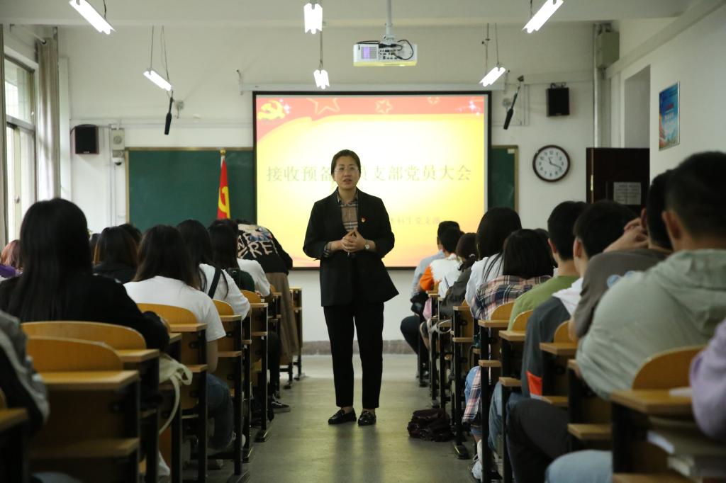 接收完成后,朱伟卫同志代表支部进行了总结发言,她指出,欢迎68名同志加入中国共产党,为党组织输入新鲜血液,使得党组织更加朝气蓬勃,并希望这68名同学从今以后能以一名优秀共产党员的标准来严格要求自己继续加强政治理论的学习,发挥一名党员的模范带头作用。