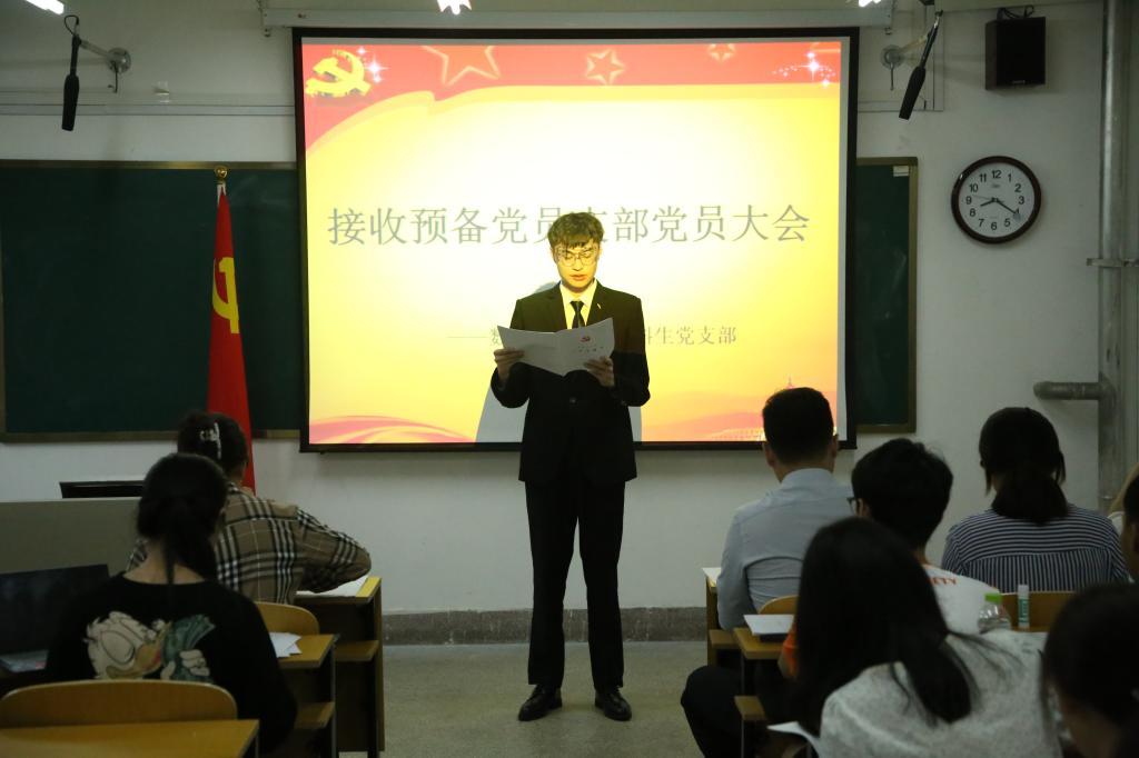 会上,发展对象王鑫、王玉泰、梅欣瑜等68名同志依次宣读自己的入党志愿书,汇报自己对党的认识、入党动机、本人履历、现实表现以及需要向党组织说明的问题。第一入党介绍人、第二入党介绍人分别介绍了相关情况,与会党员按流程依次对68位同志进行无记名投票,经本科生党支部与会党员无记名投票,一致同意接收王鑫、王玉泰、梅欣瑜等68名同志为预备党员。