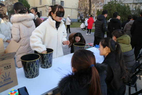 本次趣味运动会由党员带头,以开展集体户外游戏的形式进行,“沙包投准”、“跳绳一分钟计时赛”、“踢毽子一分钟计时赛”、“筷子夹乒乓球”、“呼啦圈计数”、“飞镖投掷”、“跳大绳”、“拼魔方”等趣味游戏。游戏分别以小组为单位,以促进同学们之间的交流,现场气氛十分活跃,加深了同学们之间的感情。