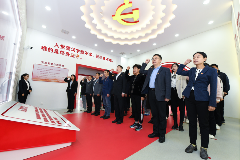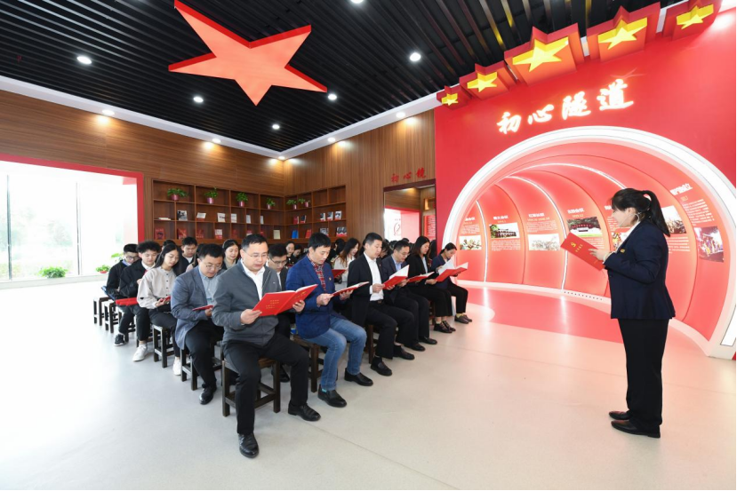 在讲解员的讲解和带领下,学院党委开展了“八个一”活动,推动主题党日活动“走新”更“走心”。“参观一个红色展厅”,在“初心隧道”中,党员们重走了我党一百多年来的沧桑奋斗之路,感受着老一辈共产党人为追求真理而不懈奋斗的激情岁月,引导着广大党员不忘苦难辉煌的“来时路”,走好奋进民族复兴的“脚下路”;“进行一次红色经典诵读”,党员干部齐声朗诵红色经典《走得再远都不能忘记来时的路》,从红色故事中汲取知识、充盈智慧、砥砺前行;“重温一次入党誓词”,本科生党支部书记高思明带领全体党员重温入党誓词,叩问初心使命,进一步坚定了对党忠诚、为党奋斗的信仰信念;“同过一次‘政治生日’”党员们通过过“政治生日”,重温了自己加入党组织的难忘一刻,找到个人的政治归属感,深化对党的认识,珍惜政治生命,激发奋斗、奉献的内在自觉。“聆听一堂微党课”讲解员深情为大家讲述了跨越百年、历久弥新的的一代又一代的共产党人故事和精神——《理想信念是共产党人精神之“钙”》,引导广大党员赓续红色血脉,用精神之火、信念之光激励奋勇前行的磅礴力量。“拍一次支部全家福”进一步激发了学院基层党组织活力,提升凝聚力,增强广大党员的光荣感、使命感;“党委书记讲一次党课”,党委书记宋国栋深入浅出、入情入理,用一个个小故事把共产党人苦难辉煌的过去、日新月异的现在、光明宏大的未来贯通起来,引导广大师生党员自觉传承红色基因,担当民族复兴大任;“进行一次政治体验”,在政治体验室,一起观看专题片《初心之问》,党员们自我把脉诊断,永葆共产党人的政治本色。