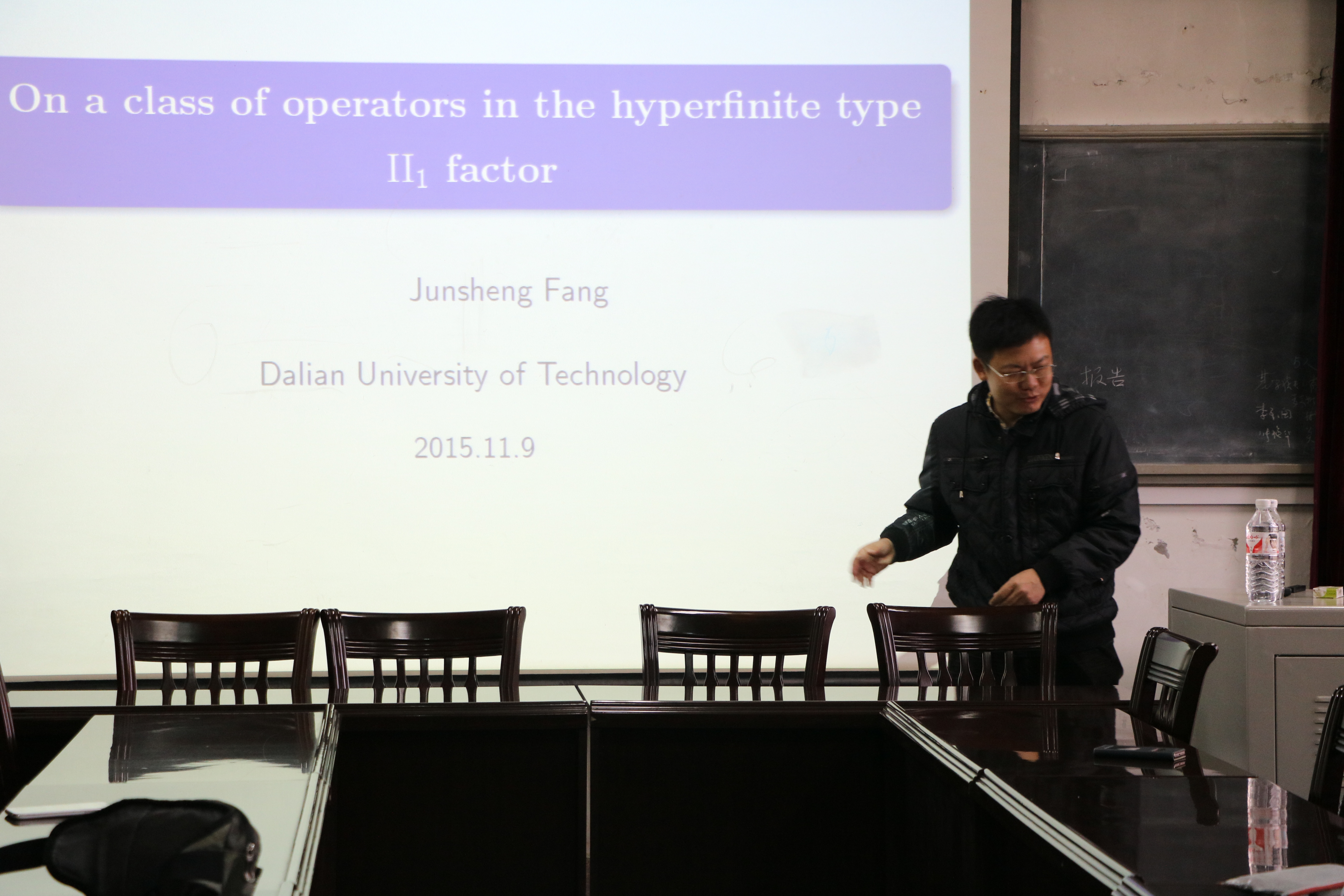 部分青年教师和研究生作了题为《On a class of operators in the hyperfinite type II_1 factor》的学术报告。