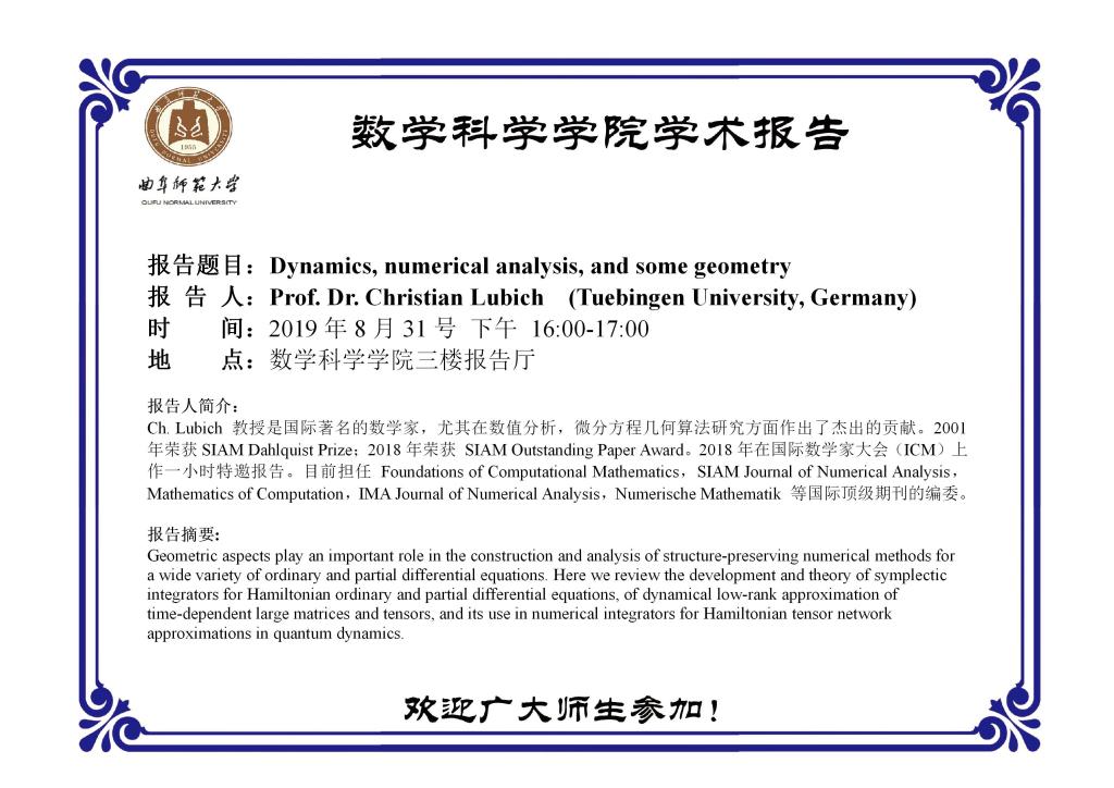 Ch. Lubich 教授学校报告信息预告